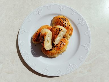 - Üzerlerine yumurta sarısı çırpın ve bir sürecek yardımı ile ya da elinizle yumurta sarılarını sürün, ardından susam ve çörekotuyla süsleyin.