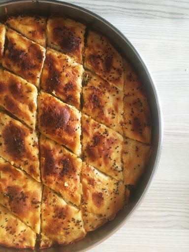 - Yoğurt ve zeytinyağı sürmemizin nedeni en üstteki yufkada kızarmış kıtır bir katman elde etmek.