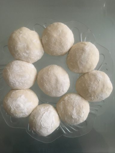 - Dinlendirdiğimiz hamurları 9 eşit ve yuvarlak şekilde bezelere ayırıyoruz. Tekrar 10-15 dakika dinlenmeye bırakıyoruz. Bu dinlenme sayesinde daha rahat açılan hamurlar elde edeceğiz.
