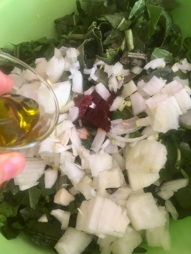- Hamuru dinlendirme aşamaları sırasında ıspanaklarımızı bol su ile yıkıyoruz ve doğruyoruz. İyice suyu sızan ıspanakları elimizle sıkarak içinde su kalmayacak şekile getirelim ardından baharatlar ,yağ ve soğanlarıyla birlikte güzelce karıştıralım.
