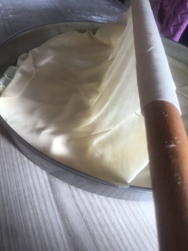 - Hazırlamış olduğumuz iç harcını 2 eşit parçaya ayıralım ve hamurlarımızı ince bir şekilde açmaya başlayalım.