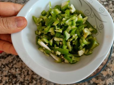 - Lorun içerisine doğradığımız soğanları ve biberleri ekleyelim.
