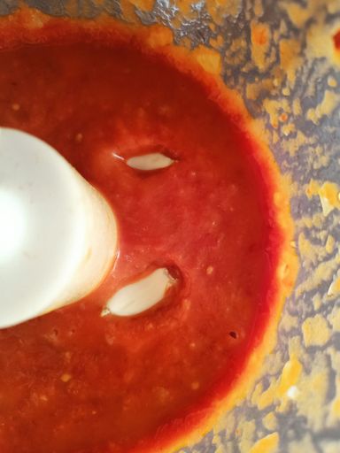 - Domateslerinizi robottan geçirin ve robottan geçirilmiş domateslere kavurduğumuz soğanları ekleyin ve tekrar blenderdan geçirin.